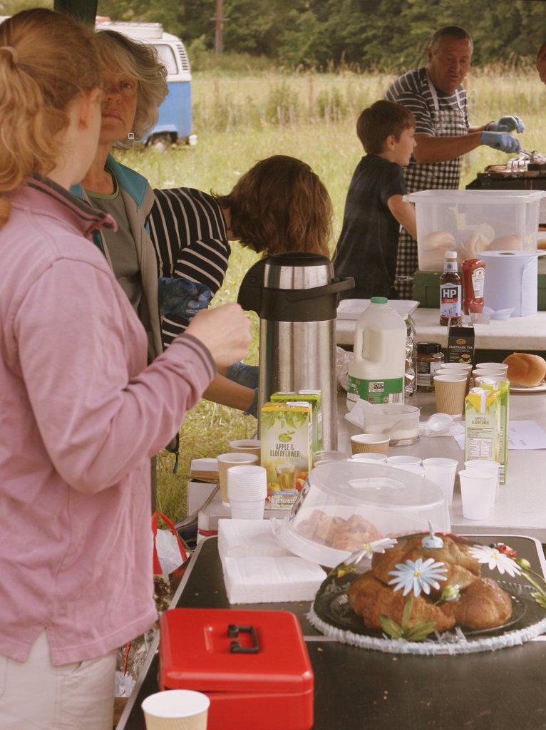 The cooked breakfasts provided by Phil and Wayne, ably assisted by Phil’s son, proved very popular across the morning with repeated forays into the village to find more supplies to meet demand. Our thanks also to Jessica, Nikki, Geoff and all the others who helped keep everyone in food and drinks all morning – it’s a wonderful place to have breakfast.