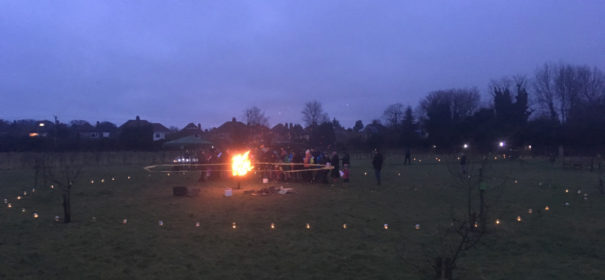 20th January 2018 – The trees were well toasted at the Winter Wassail. The orchard looked magical lit up by a myriad of lanterns. Many thanks to Mark, our toast master, to Elaine for leading the singing, to Lara for her recorder playing and to all the children who sang beautifully.