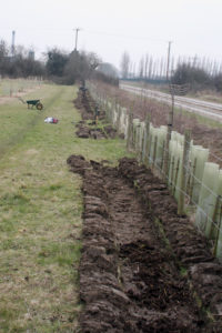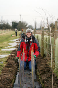 Great work by volunteers from GE Energy, who planted a native hedge along the orchard boundary nearest the guided busway. The hedge plants were provided by the Woodland Trust and include hawthorn, blackthorn, hazel, silver birch, rowan, common oak and elm. This will create a really rich, deep native hedge that will attract wildlife and form a secure natural boundary between the orchard and the guided busway.