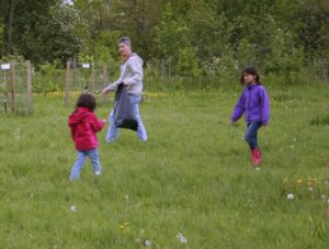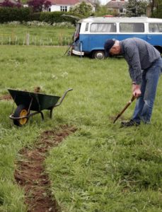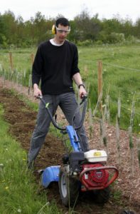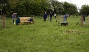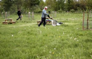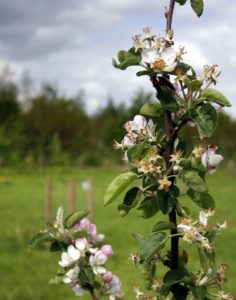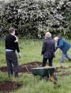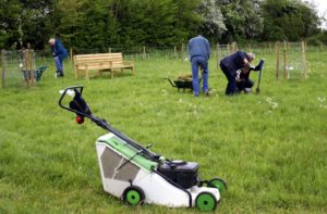 It was a warm sunny morning and the orchard is turning into a lovely place to spend a bit of time. Jobs for the day included preparing two of the boundaries for sowing with a wildflower mix, planting out some of the wildflower trays that have been grown over the winter and cutting some pathways through the grass with the lawnmower that has been kindly donated to the orchard.