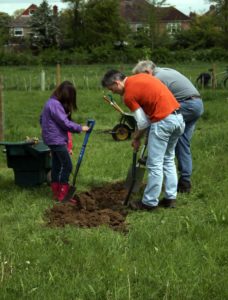 Some ground was cleared for the British Legion (who so kindly bought the long bench) to plant some poppy seeds to commemorate the 100th anniversary of WWI and thanks to the donation of a camper van of topsoil from Chivers Farm, we were also able to fill in some of the test pits near the entrance gate to level the area out again.
