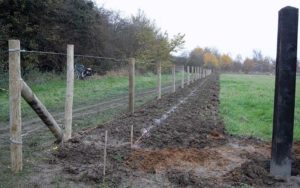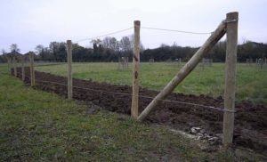 Thanks to a lot of time, effort, and generosity from all at Chivers Farms – particularly Phil Scott – we have most of the boundary fence up around the orchard.