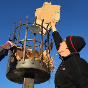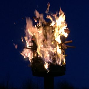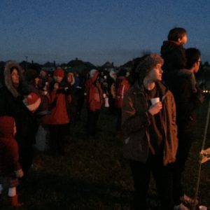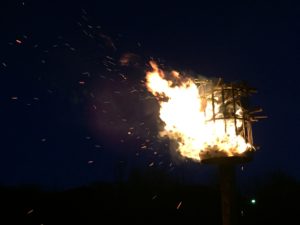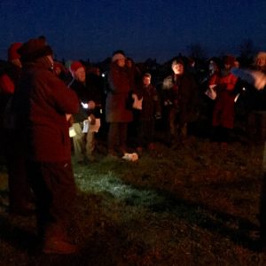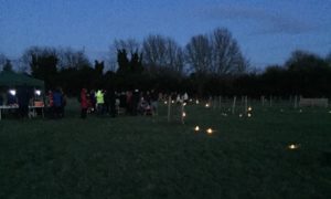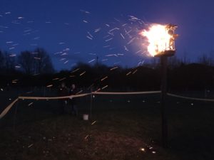 It was wonderful to see so many people at the orchard on a cold January evening for the second HICOP Wassailing. It was a fabulous evening with the orchard made to look special with tea lights in jars marking the centre circle and paths and the new beacon at the centre. The beacon lit up the orchard and was a focal point for the evening.